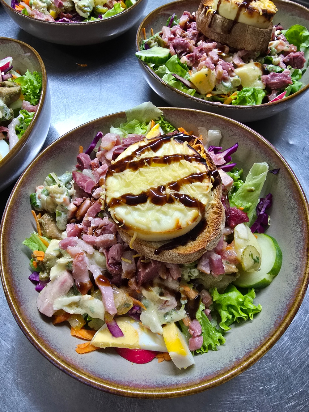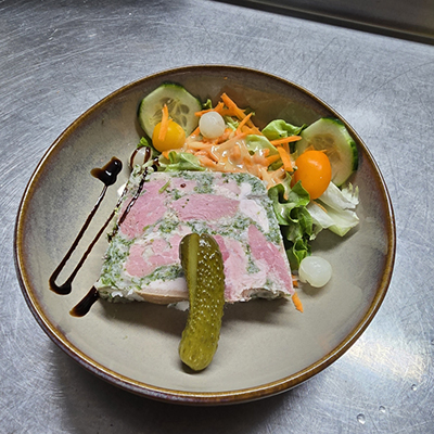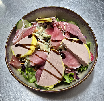 Salade de l'Auberge (Salade, crudités, lardons, gésiers, chèvre chaud sur son croûton)