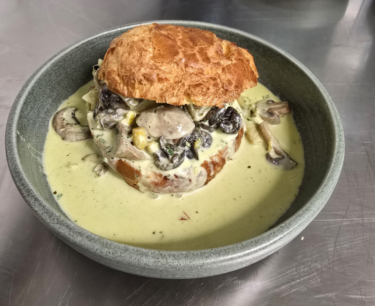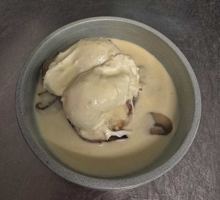 Œufs pochés crème de cîteaux et Epoisses forestière « Spécialitémaison »